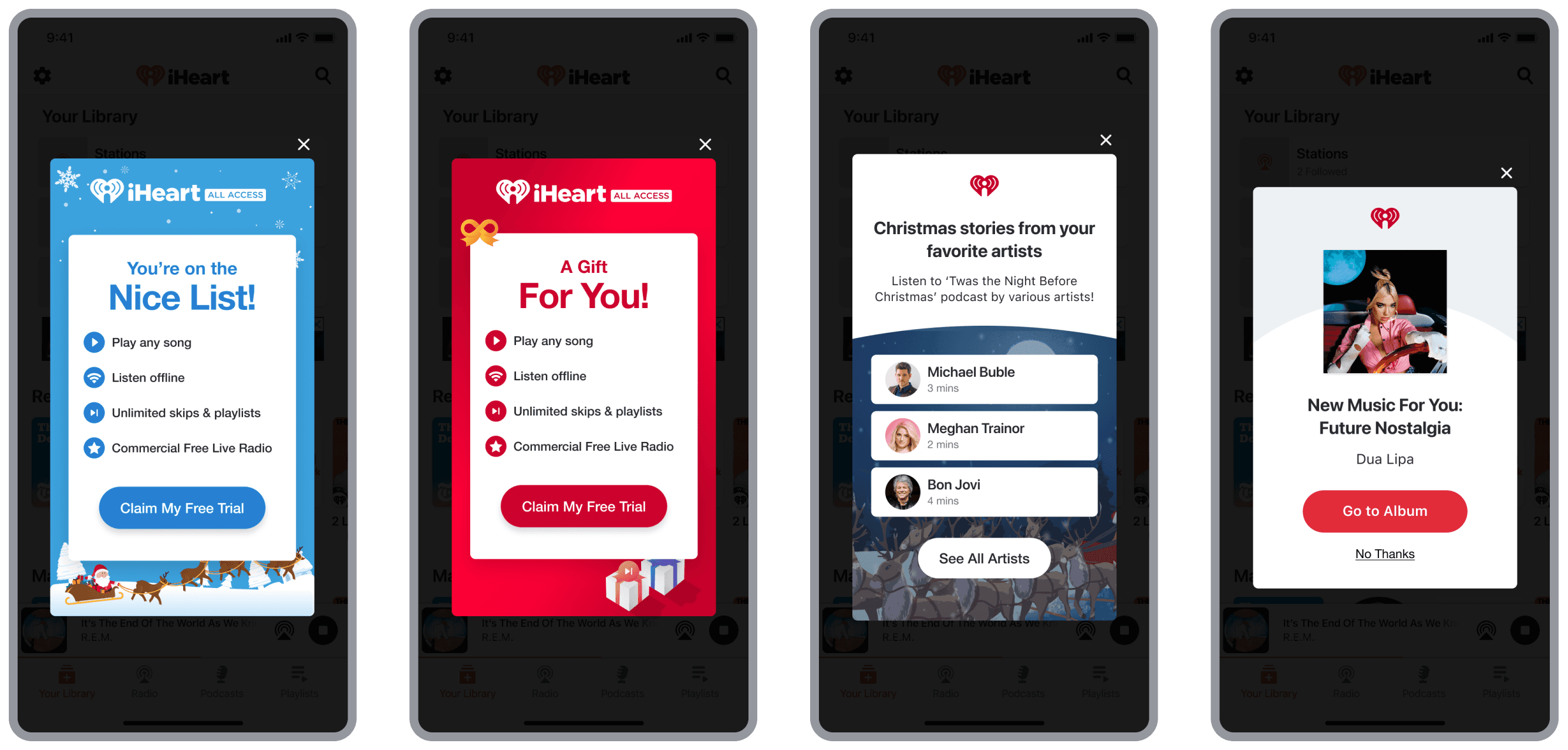 I partnered with the marketing team to design assets for iHeart holiday events and promotions featured in the mobile app.